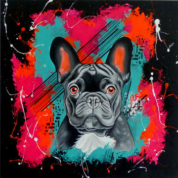 "Frenchie Pop" est un œuvre vibrante et audacieuse qui met en scène un bouledogue français emblème de la complicité et du charme canin. Avec ses yeux orange fluo cet adorable compagnon attire immédiatement l’attention évoquant une personnalité pétillante et pleine de vie. Cette œuvre célèbre le mélange de la culture urbaine et de l’art offrant une expérience visuelle audacieuse et ludique, c’est une touche de fraîcheur et d’énergie tout en rendant hommage à la beauté des compagnons à quatre pattes
